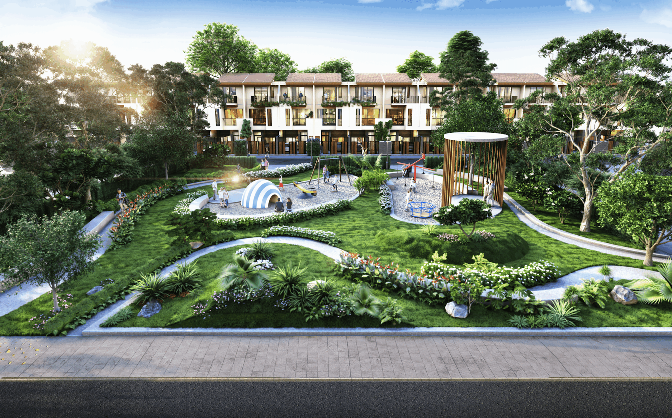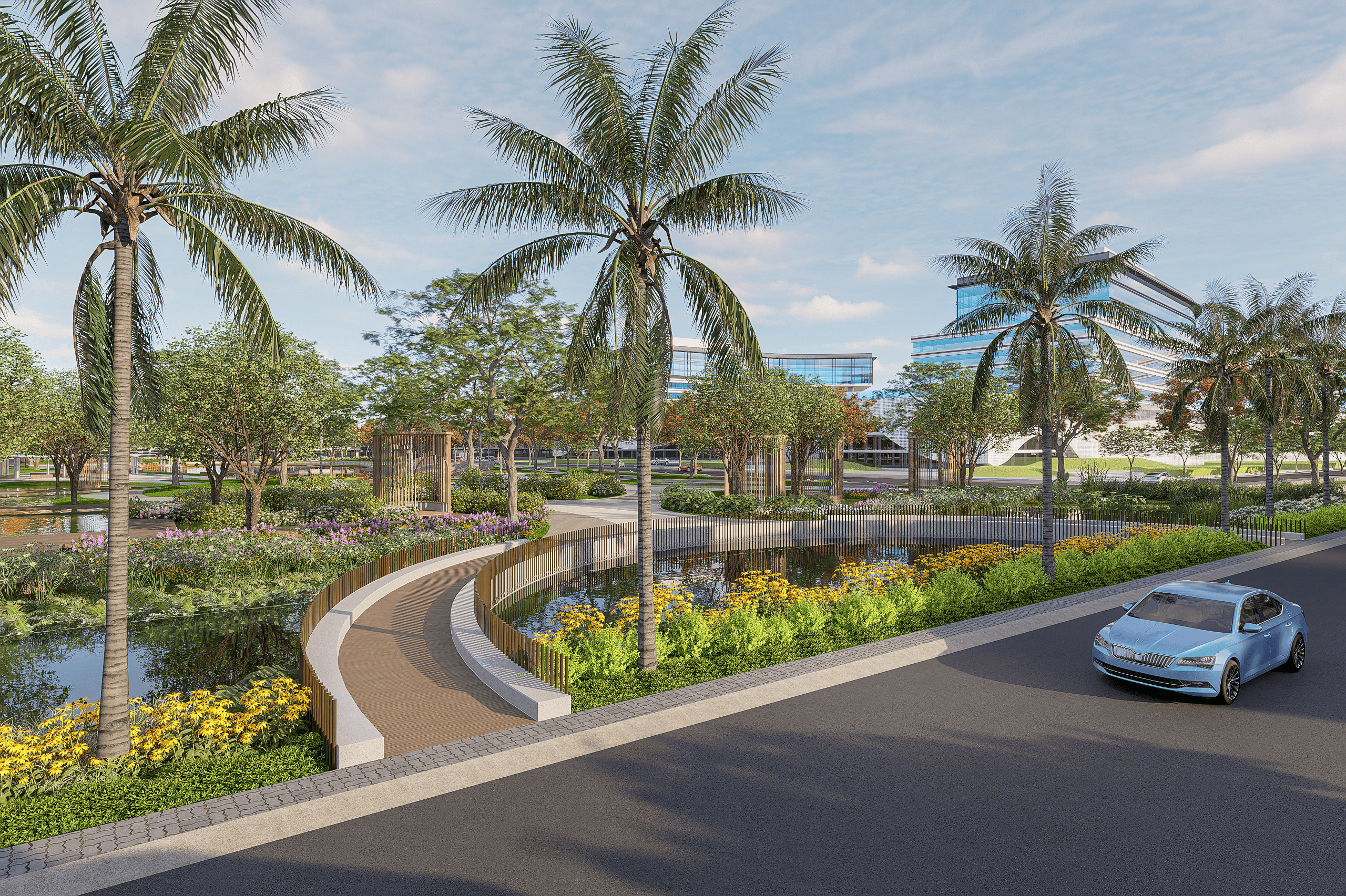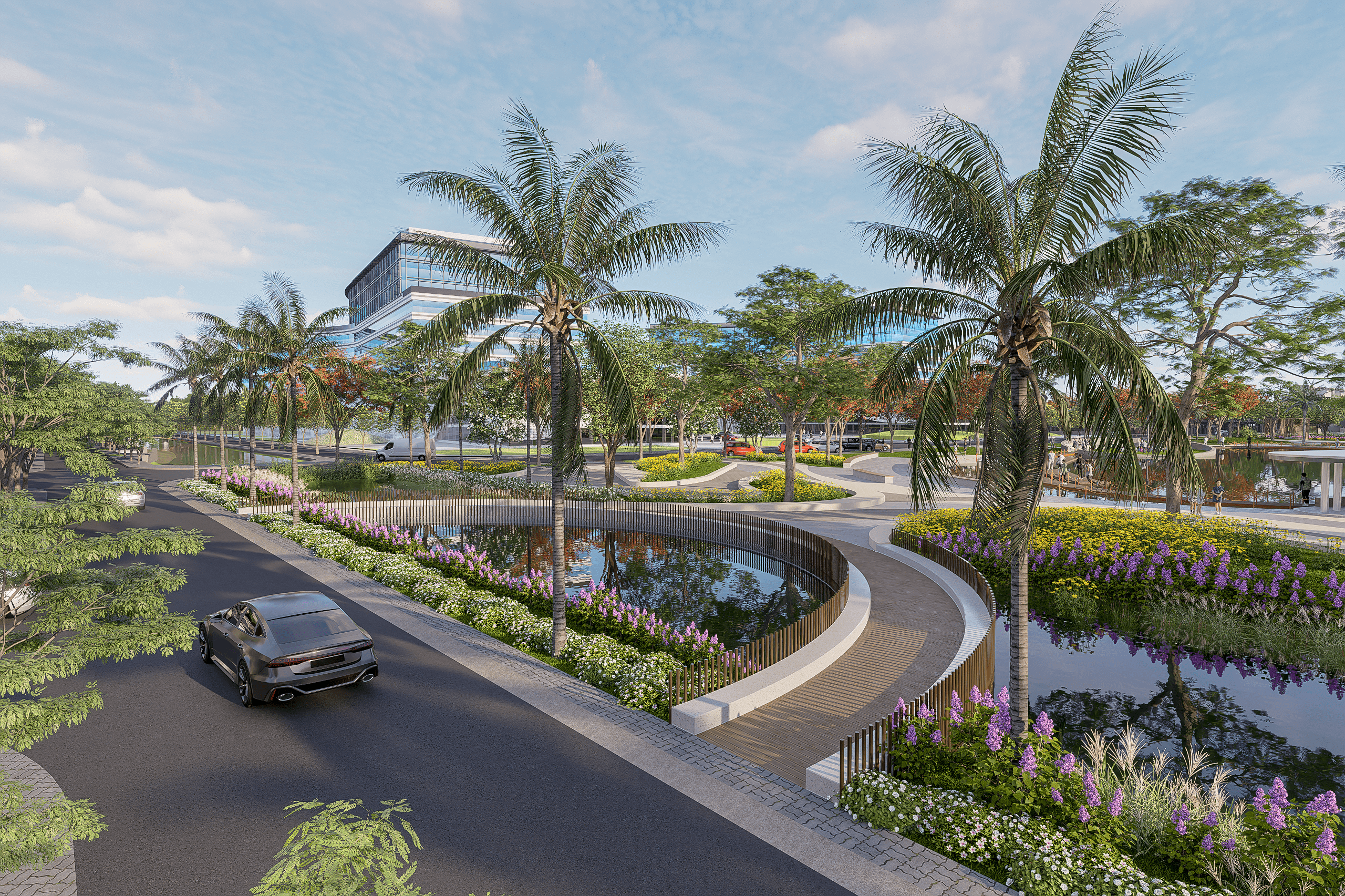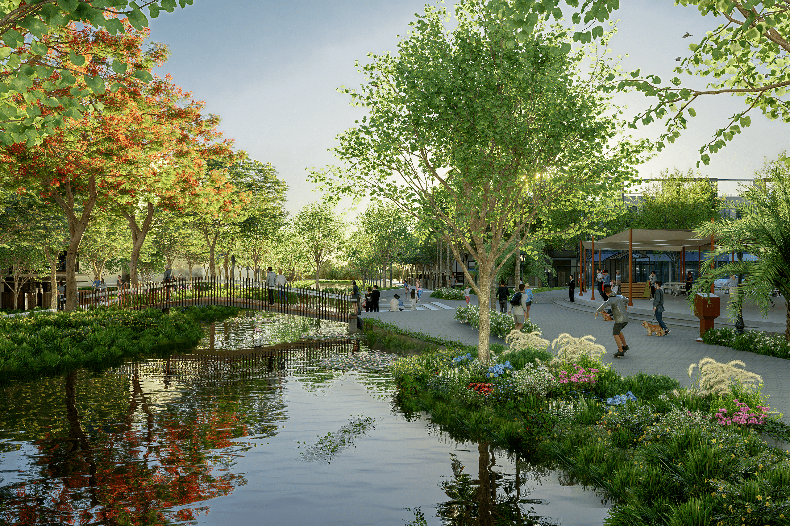 Công viên trung tâm trái tim xanh cho cuộc sống an nhiên quy tụ: Khu vui chơi trẻ em, khu trượt ván nghệ thuật, sân khấu ngoài trời, khu biểu diễn nhạc nước, vườn tượng điêu khắc, quảng trường sự kiện, đường dạo bộ kết hợp đường đạp xe ven hồ, …