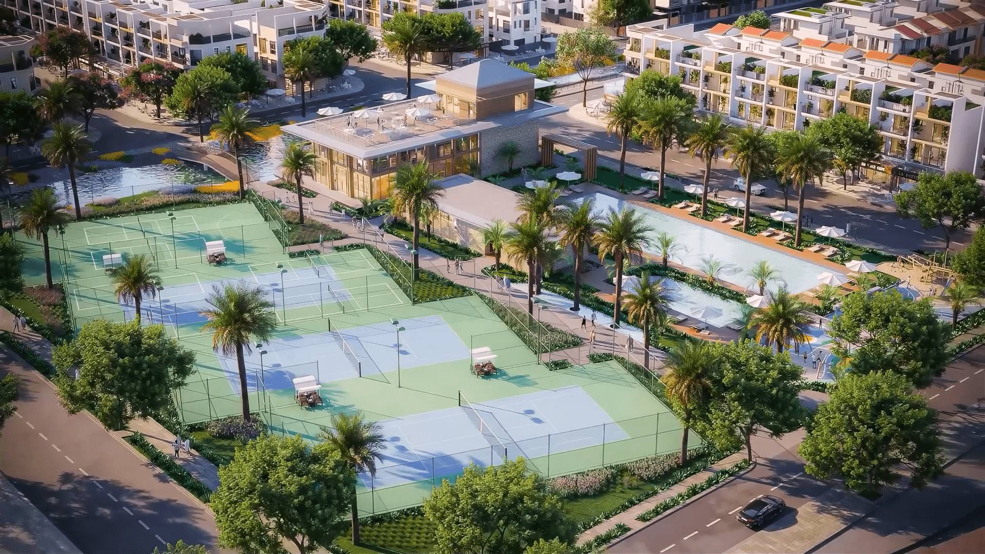 Trung tâm TDTT được xây dựng đầu tiên bao gồm: hồ bơi người lớn và trẻ em, khu sinh hoạt vui chơi và thể dục thể thao ngoài trời, sân tennis, sân thể thao đa năng, phòng tập gym và khu vui chơi trẻ em.