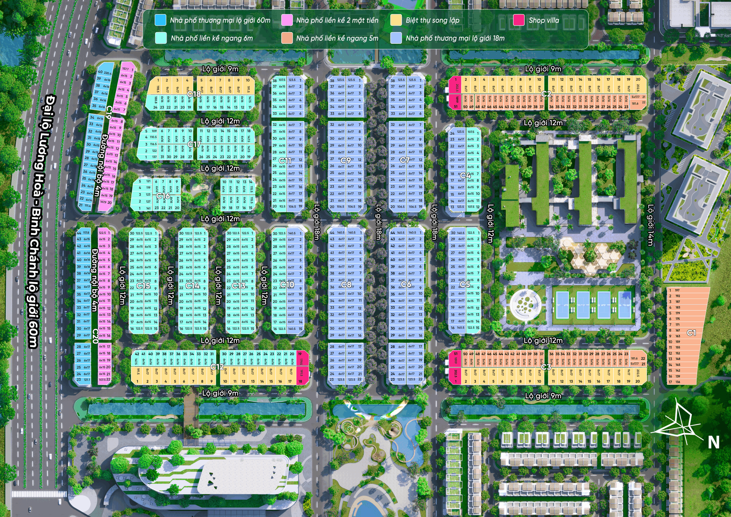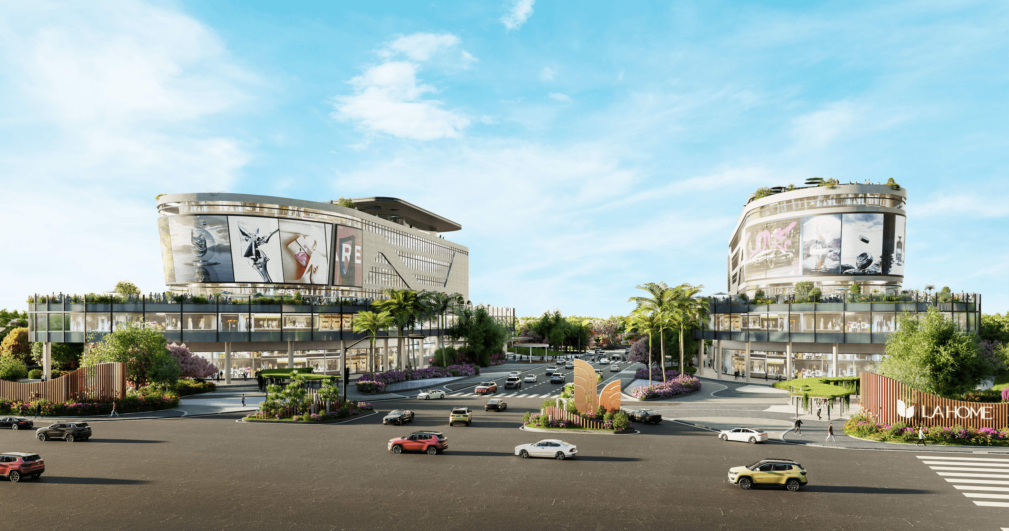 Hai khối trung tâm thương mại ngay mặt tiền Đại lộ Lương Hòa – Bình Chánh tổng diện tích 3ha đem lại sự sôi động sầm uất ngay cổng vào dự án. Nơi thu hút sự tham gia của những thương hiệu tiêu dùng, giải trí, ẩm thực, …